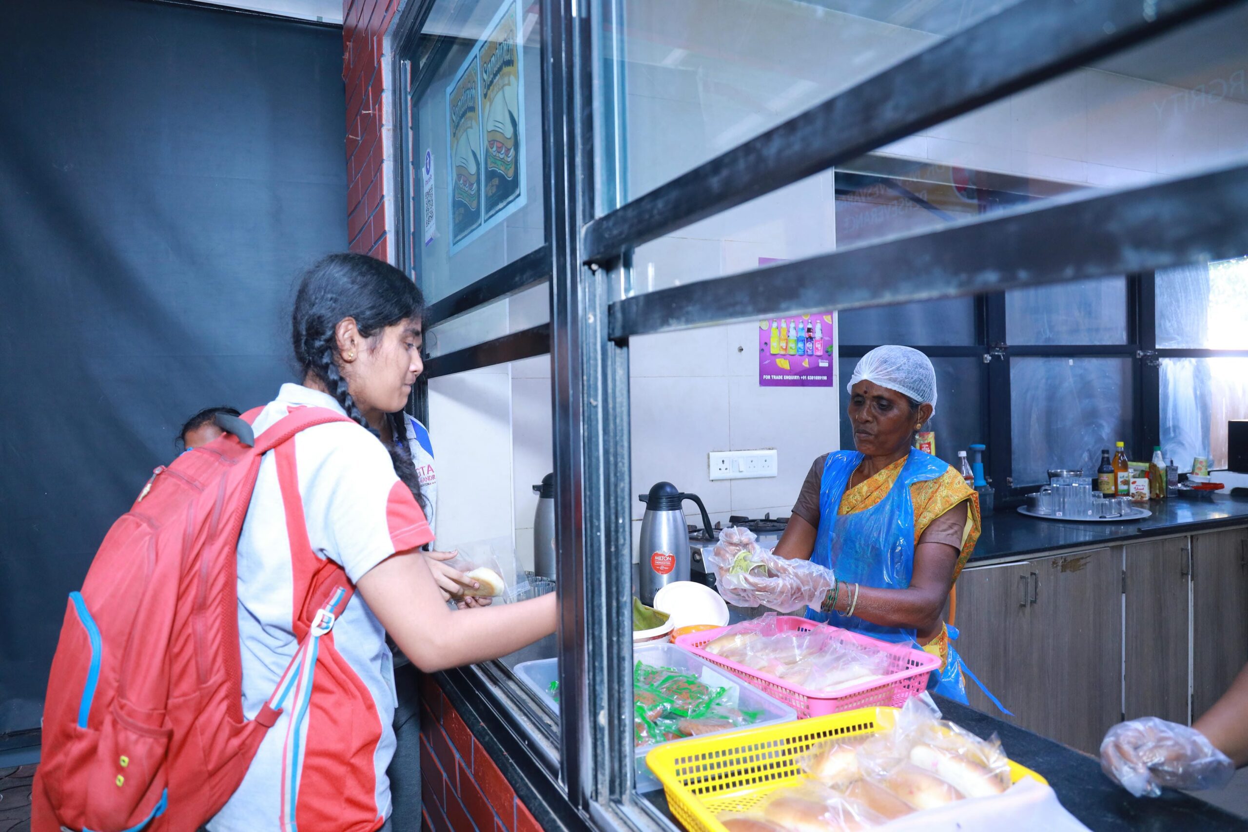 A canteen, monitored by a nutritional expert, supplies healthful food, thus catering to the needs of both students and staff.