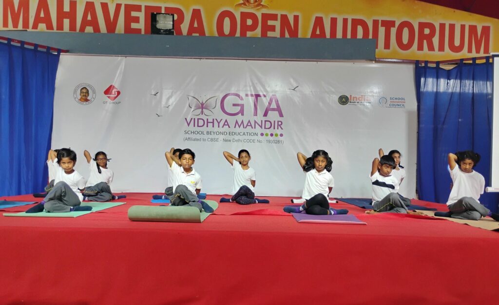 Pranayama, meditation and yogasana form an integral part of a regular school day. This helps the students get rid of their stress and focus on their goals and priorities. A weekly bhajan session led by students help the school come together every Monday morning. Bhagawat Gita is chanted during the morning assembly. The National flag is hoisted every Monday morning and the integration pledge is taken by all the students.