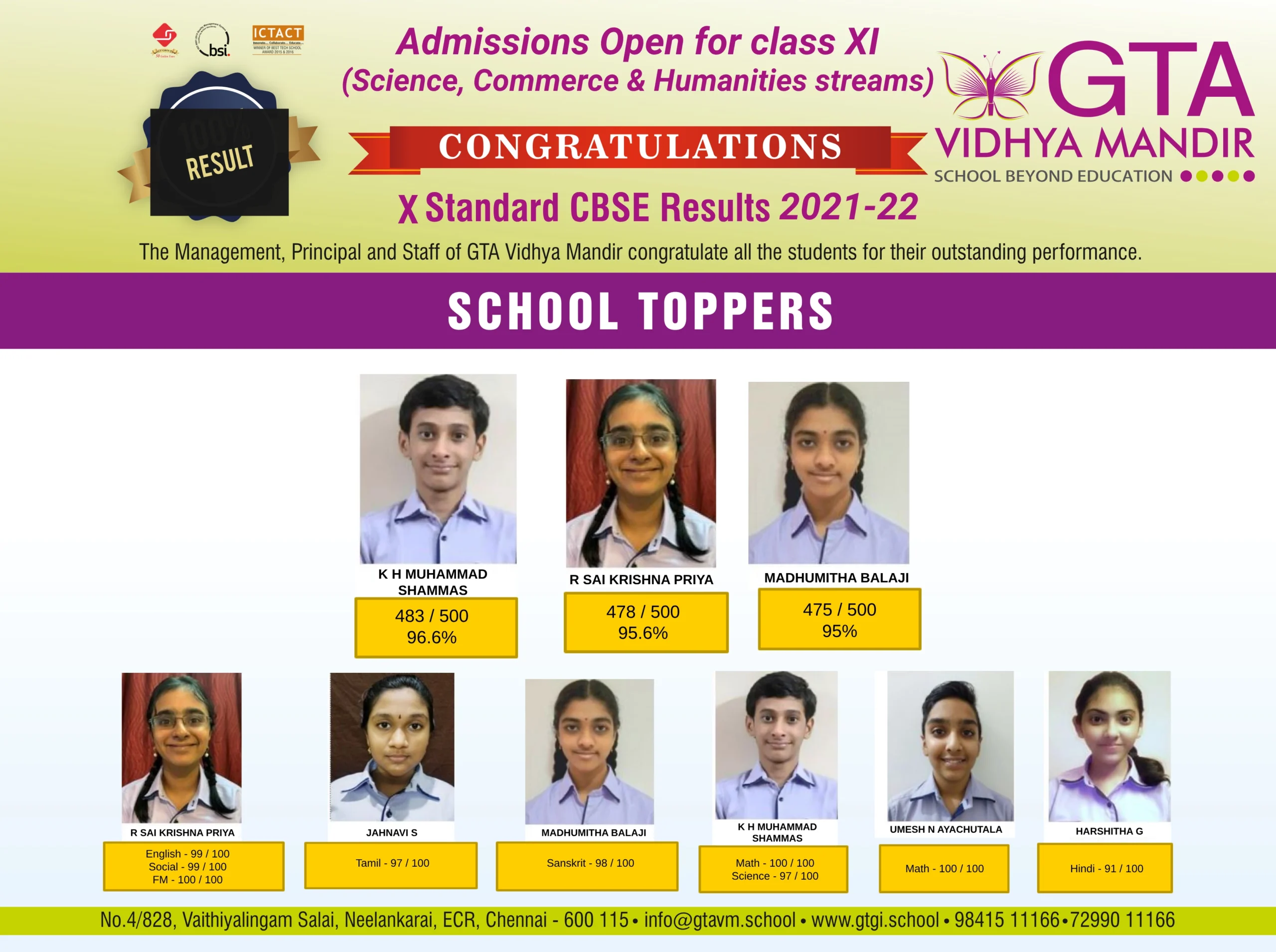 GTA Vidhya Mandir added a feather to its cap, Presented with the BEST TECH SCHOOL award. Also, it has been credited by ICT Academy of Tamil Nadu, as being a school that makes optimum use of technology to enhance the teaching – learning experience for both students and teachers.